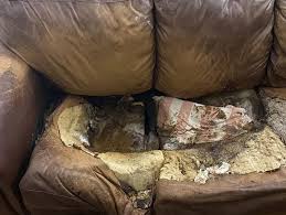 The couch was absolutely saturated with urine & feces that had seeped through to the floor below to the extent that the hardwood beneath was warped.