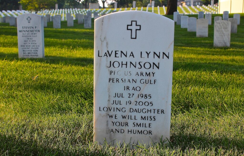 LaVena’s funeral was held on July 27, 2005, a day that would have been her 20th birthday. She was buried with military honors at Jefferson Barracks National Cemetery & was posthumously promoted to private first class & awarded good conduct & commendation medals.